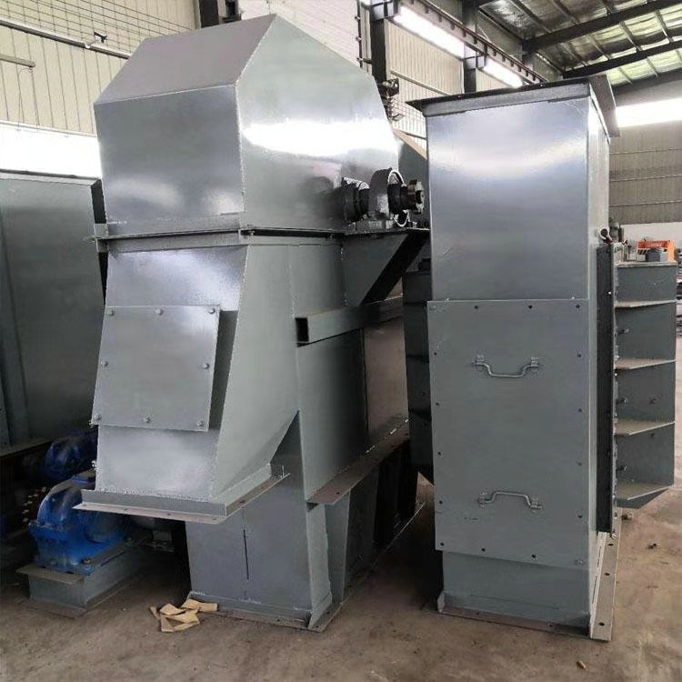 4、提升機(jī)的鏈條及料斗:鏈條為圓鋼焊接環(huán)鏈。料斗用螺母定在鏈條的接頭上。不同高度的斗提機(jī)現(xiàn)套相應(yīng)數(shù)量的鏈條、接頭、及料斗。